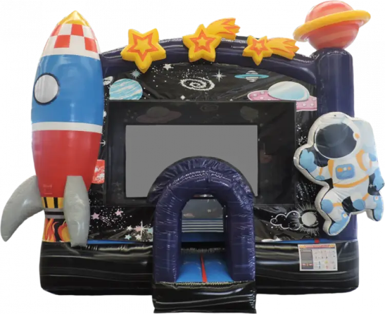 Blast off into a galaxy of fun with our mesmerizing Space-themed Bounce House! Designed to ignite the imaginations of aspiring astronauts and space explorers, this inflatable masterpiece will transport young adventurers to the far reaches of the cosmos.Featuring vibrant colors, futuristic designs, and iconic space elements such as rockets, planets, and stars, our Space-themed Bounce House is sure to captivate the attention of all who enter. Step inside and bounce among the stars, as you embark on an interstellar journey filled with boundless excitement and wonder.
