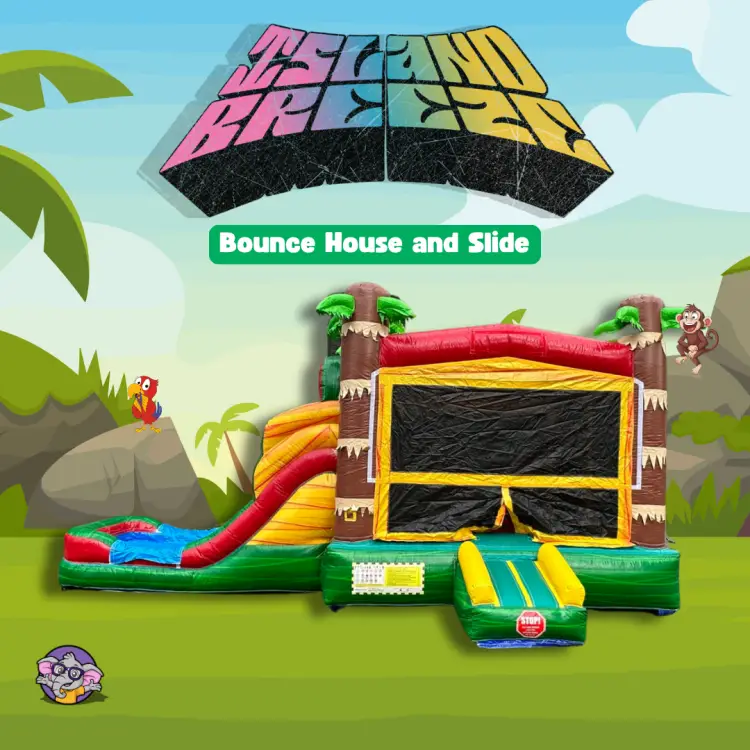 Welcome to a tropical paradise of fun and adventure with our Island-themed Combo Bounce House! Step onto the sun-kissed shores and immerse yourself in the vibrant and lively atmosphere of this inflatable wonderland.