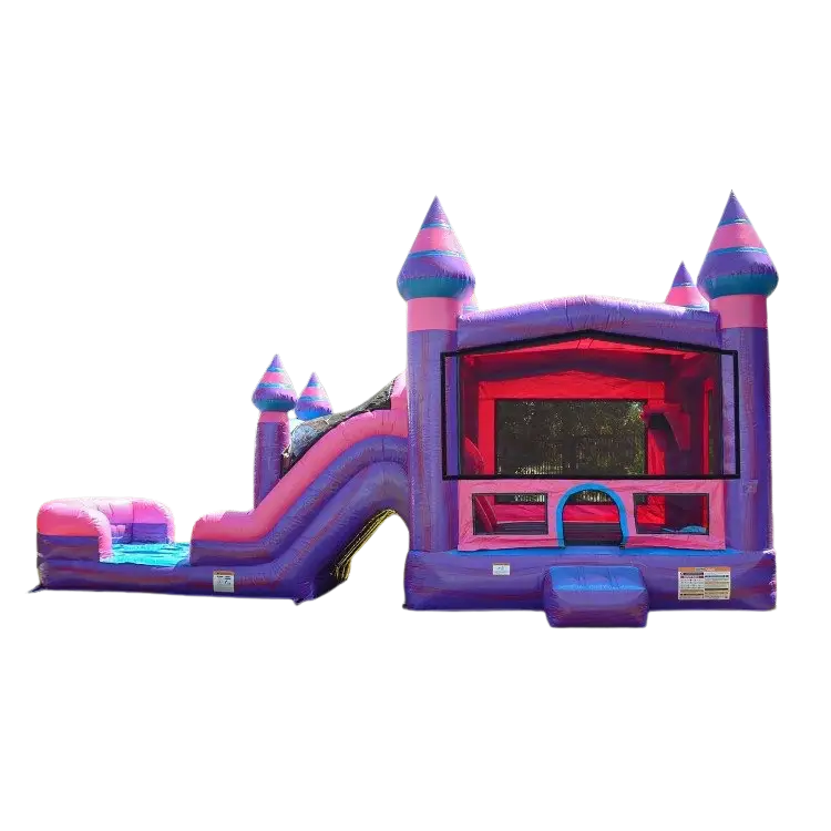Create a magical party experience with the Royal Princess Dual Lane Bounce & Slide Combo (Wet or Dry) from Marques Amusement Company. Designed with beautiful pink and purple castle towers, this inflatable brings a fairytale atmosphere to birthday parties and special celebrations.