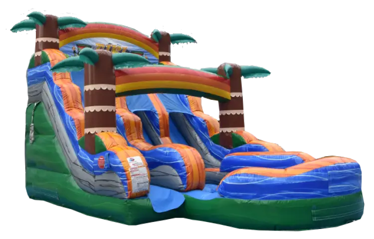 Slides have a pool landing for water use or a soft landing pad for dry setups (available upon request).